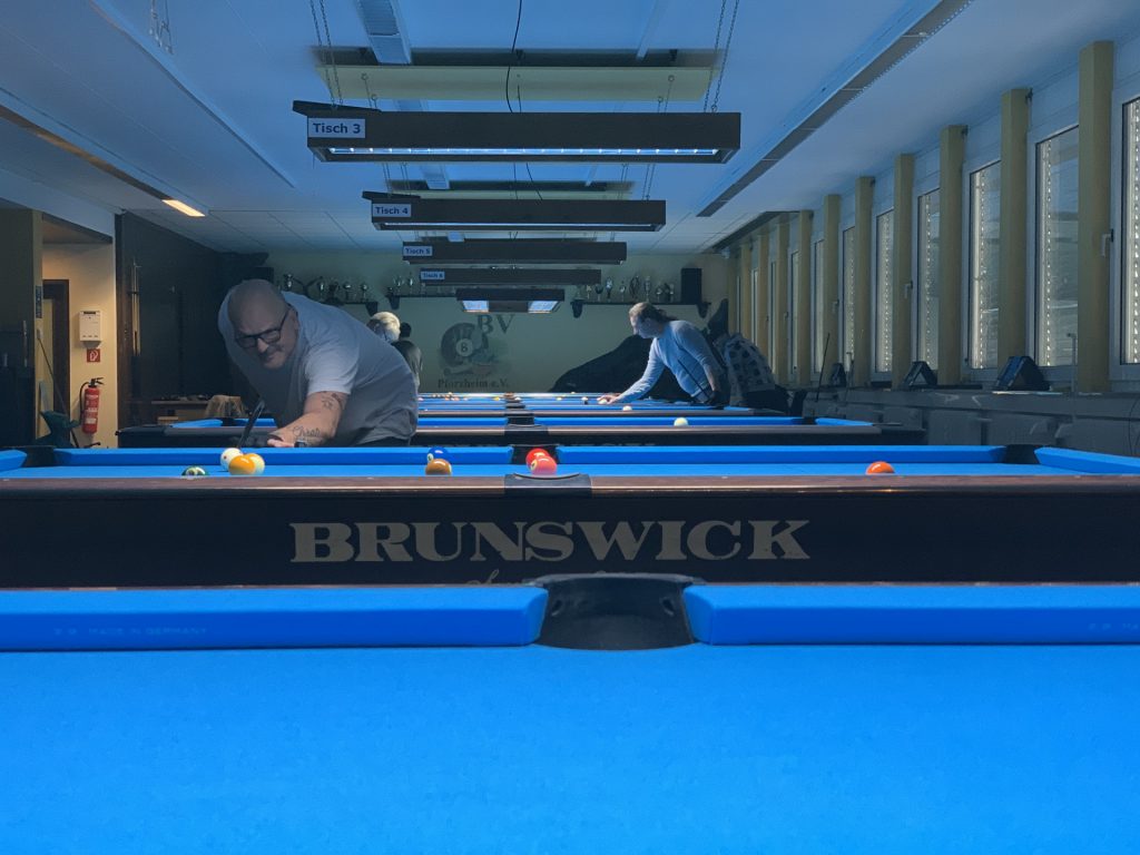 Wir haben drei Snookertische, acht Billardtische, eine kleine Küchenecke mit einer großen Auswahl an Getränken und Snacks sowie viele Sitzecken, in denen man es sich bequem machen kann. Das Vereinsheim ist barrierefrei zugänglich.