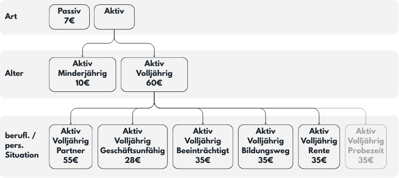 Die aktive Mitgliedschaft ist alters- und situationsabhängig und wird in minderjährige (<18 Jahre) und volljährige Mitglieder unterteilt.